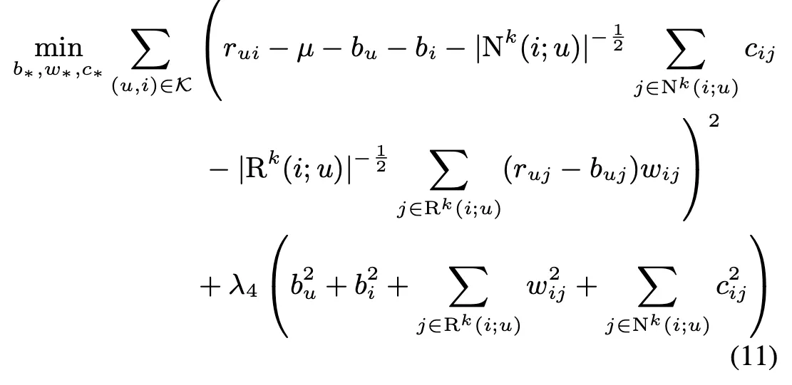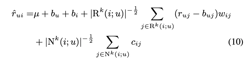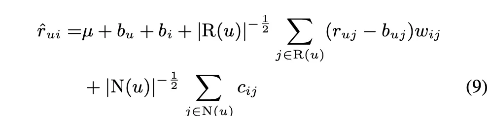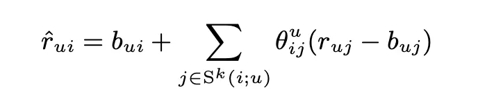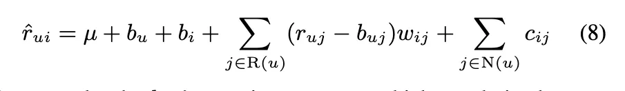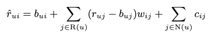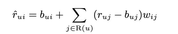 interpolation과 다른 점은 기존에는 item i에 대해서 비슷한 item 집합 K에 대해서 보간법을 진행했다면, 이건 user가 평가한 전체에 대해서 item i와 관련된 정도를 w_ij로 직접적으로 예측한다는 것.