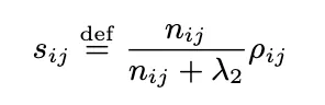 Pearson corelation coefficient를 이용해서, item i와 j를 유사하게 평가하는 경향을 측정함.