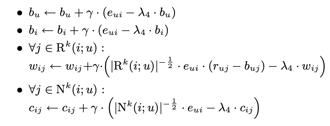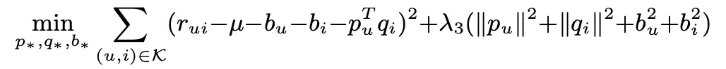 사용자 u에 대한 편향 + i에 대한 편향 + 전체적인 편향 = b_ui이다.