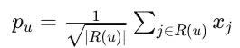 사용자는 p_u로 나타내어지고 item은 q_i로 나타내어짐.