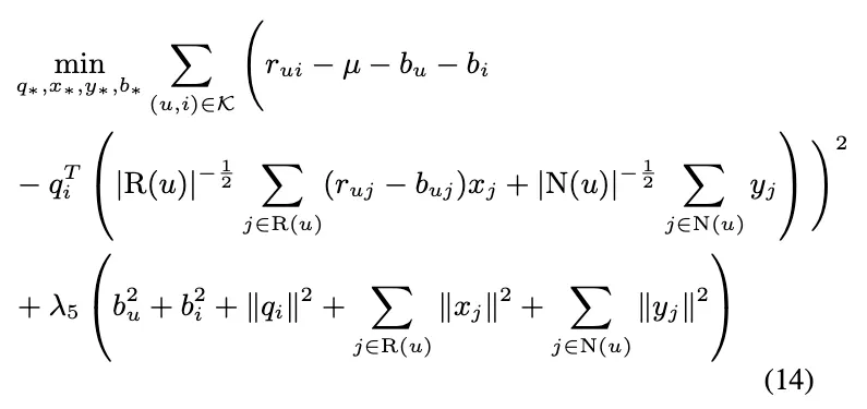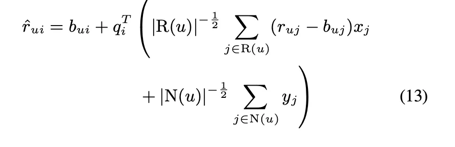 SVD++ 항: user과 item profile의 interaction을 나타냄.
