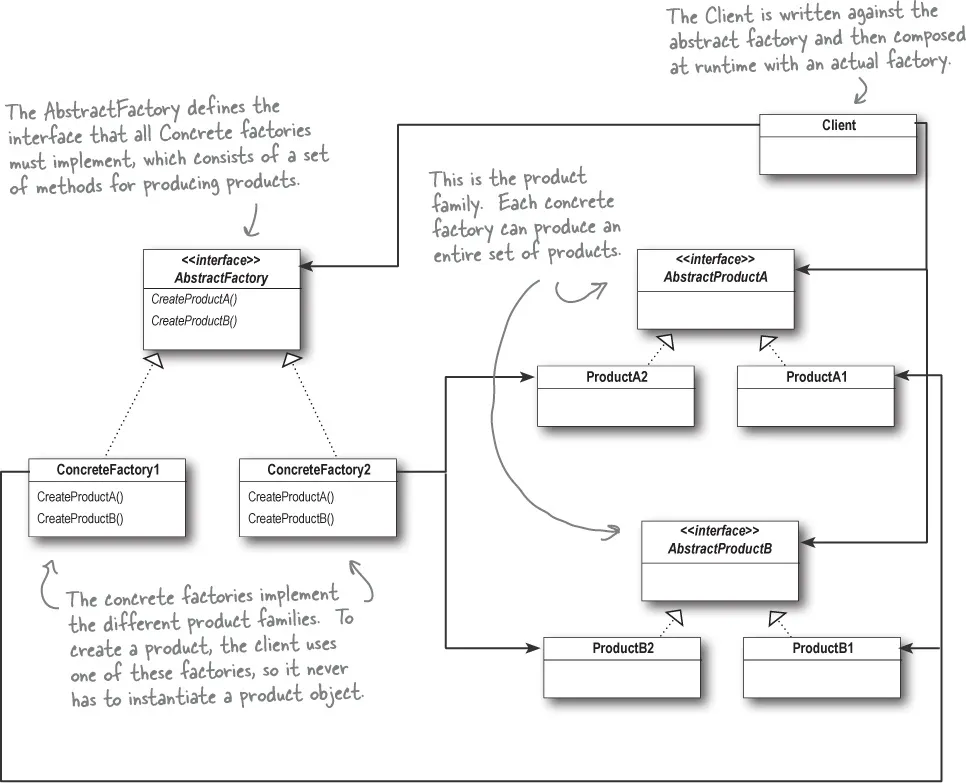 추상 팩토리를 통해 제품군을 생성하기 위한 인터페이스를 생성할 수 있다.