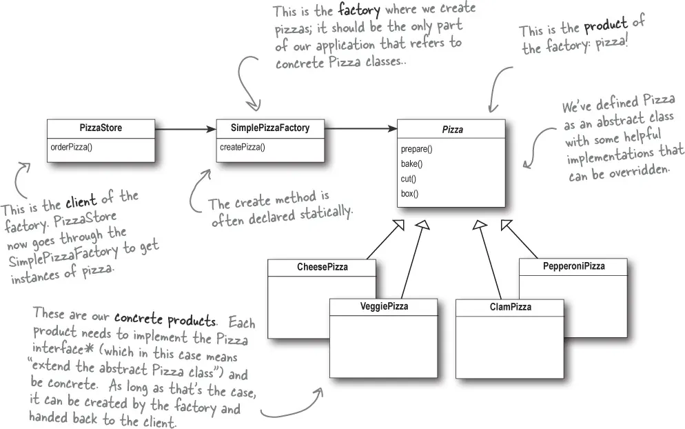 간단한 피자 팩토리 → 기존에 있는 생성 부분을 전담할 객체 클래스를 정의한다.