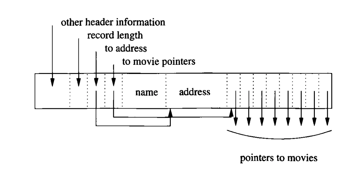 variable format record: 레코드의 필드가 뭐가 될지 모르고, 얼마나 나타날지도 잘 모를 수 있다.