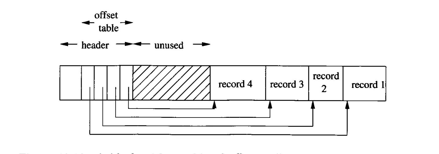또 다른 방법은 블럭 안에 각 record에 대한 offset을 기록하는 것이다.