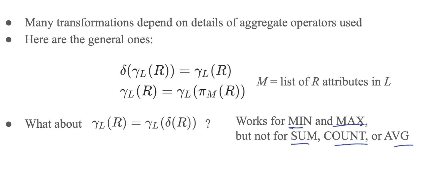 projection and duplicate elimination은 조심히 다뤄야한다.
