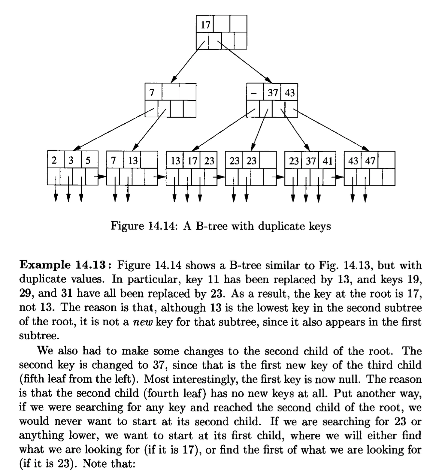 23보다 작은걸 찾으려고 할 때 root의 두번째 child로 일단 올거다. 그리고 그것의 두 번째 child에서 시작하고 싶지는 않다. 왜냐하면 첫번째 key가 Null이기 때문에 두 번째 child에는 새로운게 없다는 뜻이기 때문.