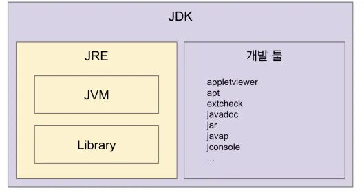 개발 관련 도구는 제공하지 않음. (실행은 할 수 있다. 단, 컴파일할 때 썼던 javac같은 거는 못 씀)