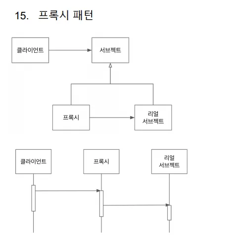 프록시와 리얼 서브젝트가 공유하는 인터페이스가 있고, 클라이언트는 해당 인터페이스 타입으로 프록시를 사용한다